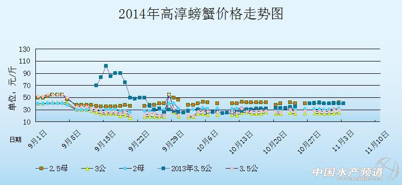 中國水產(chǎn)頻道獨家報道,據(jù)網(wǎng)友提供消息,2014年11月2日江蘇高淳河蟹價格行情如下: 南京高淳河蟹價格信息由南京康旭科技有限公司沈先生(電話:13770896772,網(wǎng)站:http://shop110368651.taobao.com)提供,由于價格波動及訂貨量影響,以上價格為收購價格,實際價格請聯(lián)系電話。 |