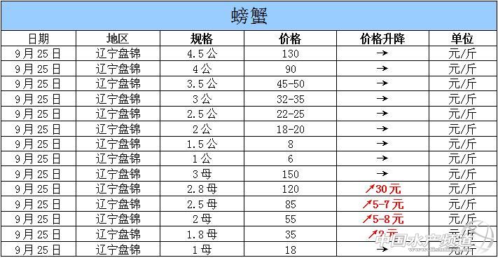 中國水產(chǎn)頻道獨家報道,據(jù)網(wǎng)友提供消息,2015年9月25日遼寧盤錦河蟹價格行情如下: 遼寧盤錦河蟹價格信息由盤錦市雙臺子區(qū)東風(fēng)市場新華街3號流波河蟹商行(電話:18040020068;15942702021;0427—6616465)提供,由于價格波動及訂貨量影響,以上價格為收購價格,實際價格請聯(lián)系電話。 【關(guān)鍵字】:河蟹價格 河蟹行情 河蟹塘頭價 (中國水產(chǎn)頻道水產(chǎn)價格信息共享Q群:245296163,歡迎提供各種水產(chǎn)品一線價格信息。 |