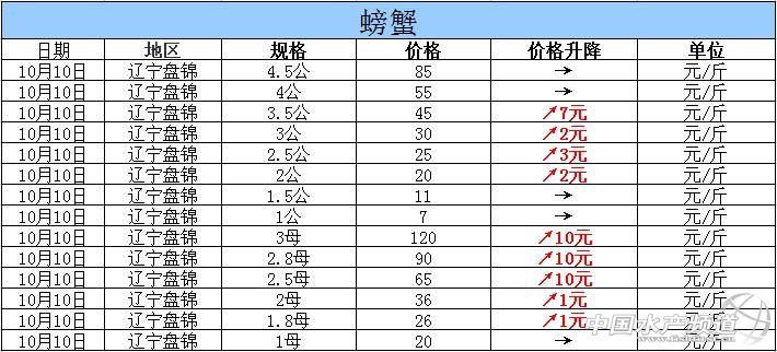 中國水產(chǎn)頻道獨(dú)家報(bào)道,據(jù)網(wǎng)友提供消息,2015年10月10日遼寧盤錦河蟹價(jià)格行情如下: 遼寧盤錦河蟹價(jià)格信息由盤錦市雙臺(tái)子區(qū)東風(fēng)市場(chǎng)新華街3號(hào)流波河蟹商行(電話:18040020068;15942702021;0427—6616465)提供,由于價(jià)格波動(dòng)及訂貨量影響,以上價(jià)格為收購價(jià)格,實(shí)際價(jià)格請(qǐng)聯(lián)系電話。 【關(guān)鍵字】:河蟹價(jià)格 河蟹行情 河蟹塘頭價(jià) 。ㄖ袊水產(chǎn)頻道水產(chǎn)價(jià)格信息共享Q群:245296163,歡迎提供各種水產(chǎn)品一線價(jià)格信息。 |