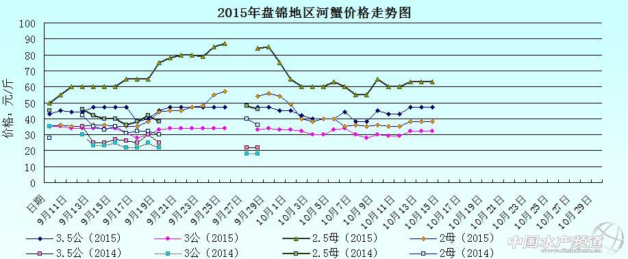 中國(guó)水產(chǎn)頻道獨(dú)家報(bào)道,據(jù)網(wǎng)友提供消息,2015年10月15日遼寧盤錦河蟹價(jià)格行情如下: 遼寧盤錦河蟹價(jià)格信息由盤錦市雙臺(tái)子區(qū)東風(fēng)市場(chǎng)新華街3號(hào)流波河蟹商行(電話:18040020068;15942702021;0427—6616465)提供,由于價(jià)格波動(dòng)及訂貨量影響,以上價(jià)格為收購(gòu)價(jià)格,實(shí)際價(jià)格請(qǐng)聯(lián)系電話。 【關(guān)鍵字】:河蟹價(jià)格 河蟹行情 河蟹塘頭價(jià) 。ㄖ袊(guó)水產(chǎn)頻道水產(chǎn)價(jià)格信息共享Q群:245296163,歡迎提供各種水產(chǎn)品一線價(jià)格信息!) |