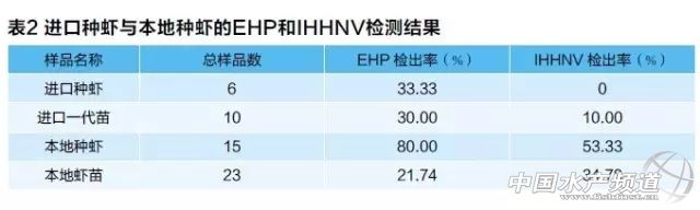 中國(guó)水產(chǎn)頻道獨(dú)家報(bào)道,針對(duì)養(yǎng)殖戶反映的南美白對(duì)蝦生長(zhǎng)緩慢的現(xiàn)象,本研究采用 EHP(蝦肝腸胞蟲)和 IHHNV(傳染性皮下及造血組織壞死病毒)實(shí)時(shí)熒光定量 PCR(RT-PCR)檢測(cè)方法,對(duì)粵西地區(qū)的南美白對(duì)蝦親蝦、蝦苗、成蝦、餌料、鮮活餌料和育苗與養(yǎng)殖水體進(jìn)行檢測(cè),分析這兩種病原在種苗生產(chǎn)與對(duì)蝦養(yǎng)殖中的流行情況。 一、材料與方法 1、試驗(yàn)材料 本試驗(yàn)用到的蝦苗、種蝦、成蝦、種蝦餌料和育苗與養(yǎng)殖用水樣品均由湛江恒興南方海洋科技有限公司實(shí)驗(yàn)室收集,樣品分別采自于粵西區(qū)域的育苗與養(yǎng)殖場(chǎng)。 EHP熒光定量 PCR檢測(cè)試劑盒,熒光定量 PCR儀(TL988),解剖剪等。 2、試驗(yàn)方法 (1)樣品處理 蝦苗:用生理鹽水沖洗蝦苗表面3次以上,隨機(jī)挑取 10尾,置于玻璃研磨器中充分研磨后,用磁珠法提取DNA。親蝦、成蝦:分別取鮮活蝦體的肝胰臟 0.1g(約黃豆大。,同上。種蝦餌料:取種蝦餌料 0.1g,同上。水樣:分別量取 80mL的水樣,高速離心8min,棄上層清夜;吸取 1mL生理鹽水,充分懸浮沉淀,轉(zhuǎn)入 1.5mL的 EP管中,高速離心5min,棄上層清夜,同上。 。2) EHP熒光定量 PCR檢測(cè) 以上述提取的 DNA為模板,進(jìn)行實(shí)時(shí)定量熒光 PCR檢測(cè)。20μL反應(yīng)體系,參照試劑盒的說明書進(jìn)行配置。擴(kuò)增條件:95℃預(yù)變性 2min;94℃變性10S,60℃退火 30S(此處采集熒光,設(shè)置為 FAM綠色熒光),共 40個(gè)循環(huán)。 二、結(jié)果與分析 1、多種樣品的 EHP和 IHHNV檢測(cè)結(jié)果 用 RT-PCR檢測(cè)方法對(duì)粵西地區(qū)的有關(guān)南美白對(duì)蝦樣品進(jìn)行 EHP和IHHNV檢測(cè),結(jié)果匯總后如表 1所示。從表1中可知,共檢測(cè)的 87份樣品中,EHP的檢出率為41.38%,IHHNV的檢出率為 12.18%。EHP檢出率較高的為成蝦和種蝦樣品,分別為 93.75%和66.67%。同樣,IHHNV檢出率也較高分別為 31.25%和38.10%。其中未經(jīng)處理過的 2份海水樣品均有檢出 EHP和IHNNV,但經(jīng)過消毒處理后的育苗與養(yǎng)殖用水未檢測(cè)到 EHP和IHHNV。 2、進(jìn)口樣品與本地樣品的 EHP和IHHNV檢測(cè)結(jié)果 分別對(duì)進(jìn)口種蝦、進(jìn)口一代苗、本地種蝦和本地蝦苗進(jìn)行檢測(cè),結(jié)果見表2。從表 2可知,6份進(jìn)口種蝦樣品中,EHP檢出率較低為 33.33%,且未檢測(cè)到 IHHNV。同樣,進(jìn)口的一代苗中,EHP檢出率為30.00%,IHHNV的檢出率較低,為 10%。本地種蝦的 EHP和IHHNV檢出率最高,分別為 80.00%和53.33%。本地蝦苗的 EHP檢出率為21.74%,IHHNV檢出率為34.78%。 3、不同成蝦樣品的 EHP和 IHHNV檢測(cè)結(jié)果 為了探究南美白對(duì)蝦感染 EHP和IHHNV對(duì)生長(zhǎng)的影響,筆者對(duì)不同養(yǎng)殖環(huán)境(不同養(yǎng)殖場(chǎng))、不同養(yǎng)殖時(shí)長(zhǎng)和不同規(guī)格的對(duì)蝦樣品進(jìn)行了上述病原的檢測(cè)。不同養(yǎng)殖場(chǎng)成蝦檢測(cè)結(jié)果如表3所示,A養(yǎng)殖場(chǎng)的腸胞蟲載量最高,對(duì)蝦平均日增長(zhǎng)體重(簡(jiǎn)稱“日增長(zhǎng)量”)最低為 0.039g。C養(yǎng)殖場(chǎng)的腸胞蟲含量最少,其平均日增長(zhǎng)量比其它兩個(gè)場(chǎng)的高,為 0.090g。3個(gè)養(yǎng)殖場(chǎng)的樣品均未檢測(cè)出IHHNV。 B養(yǎng)殖場(chǎng)不同養(yǎng)殖時(shí)長(zhǎng)對(duì)蝦的檢測(cè)結(jié)果(見表 4)。3份樣品都有檢出EHP,其日增長(zhǎng)量最大的 B-24樣品,EHP載量相對(duì)最低;而日增長(zhǎng)量最小的 B-17樣,EHP載量相對(duì)最高。另在B-23的樣品中有檢出IHHNV。 B養(yǎng)殖 20號(hào)池不同規(guī)格對(duì)蝦(養(yǎng)殖時(shí)間 116天)的檢測(cè)結(jié)果如表 5所示,EHP的載量指數(shù)(ERCEHP)相同;其平均日增長(zhǎng)量為其成蝦樣品中沒有檢測(cè)到IHHNV。 根據(jù)以上檢測(cè)對(duì)蝦的養(yǎng)殖時(shí)長(zhǎng)和體重以及對(duì)其 EHP的檢測(cè)結(jié)果,得到日增長(zhǎng)量與 EHP載量指數(shù)(ERCEHP)的關(guān)系圖(見圖 1)。從圖中可見對(duì)蝦的日增長(zhǎng)量與 EHP載量指數(shù)呈一定的對(duì)數(shù)關(guān)系(R2=0.5746)。 三、討論 近年來,腸胞蟲在全球南美白對(duì)蝦養(yǎng)殖業(yè)中流行范圍很廣,先后在泰國(guó)、馬來西亞、印度等國(guó)檢測(cè)出該病原,在我國(guó)江蘇沿海和廣東沿海地區(qū)也多有檢出。2015年浙江省水產(chǎn)技術(shù)推廣站對(duì)浙江地區(qū)的 134份蝦苗樣品進(jìn)行檢測(cè),EHP的檢出率高達(dá)53.8%,HHNV的檢出率為 25.4%;江蘇沿海地區(qū)南美白對(duì)蝦 EHP的發(fā)病率約為 25%。本研究對(duì)粵西區(qū)域的 87份樣品進(jìn)行檢測(cè),EHP的檢出率為41.38%,IHHNV的檢出率為 12.18%。另在檢測(cè)樣品中,兩份不同海域的海水樣品有檢測(cè)到 EHP和 IHNNV,而經(jīng)過消毒處理過的養(yǎng)殖用水和育苗用水中未檢測(cè)出上述病原,可見事先進(jìn)行水處理對(duì)養(yǎng)殖和育苗的重要性。EHP和 IHHNV的檢出率較高的為成蝦樣品,可見在成蝦養(yǎng)殖過程中最容易感染到該兩種病原。分別對(duì)粵西地區(qū)進(jìn)口種蝦和本地選育種蝦進(jìn)行調(diào)查,結(jié)果發(fā)現(xiàn)進(jìn)口種蝦中 EHP的檢測(cè)率為33.33%,沒有檢出 IHHNV;而在一代苗中,IHHNV檢出率為 10.00%,說明在對(duì)蝦在幼體生產