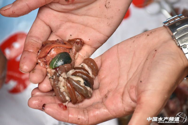 文/圖 水產(chǎn)前沿雜志 吳佳輝 中國(guó)水產(chǎn)頻道獨(dú)家報(bào)道,“很多養(yǎng)殖戶都是相信自己實(shí)實(shí)在在的感受的,沒有親眼所見任別人怎么說都不會(huì)相信的。再者,市場(chǎng)上的高檔料都比較貴,養(yǎng)殖戶需要自己去衡量是否能夠達(dá)到一定效果才有可能得到認(rèn)同。所以,我們這次請(qǐng)養(yǎng)殖戶過來(lái)的目的是想讓他們自己對(duì)產(chǎn)品的效果做一個(gè)見證。按照目前的情況,一個(gè)月后再過來(lái)進(jìn)行比較,看看一個(gè)月是否真的能增長(zhǎng)4兩,而且餌料系數(shù)在1.1以下。另外,我們讓養(yǎng)殖戶到示范戶這邊看,示范戶能做到的,他們也能做到,有這么多人見證,結(jié)果也可信。”江門海大飼料有限公司(簡(jiǎn)稱“‘江門海大”)總經(jīng)理助理李俊成表示。 空桶重1.3斤 8月31日,二十幾位養(yǎng)殖戶在李俊成的帶領(lǐng)下來(lái)到江門海大羅非魚養(yǎng)殖示范戶兼經(jīng)銷商謝暢鋒和謝暢迎兄弟兩的塘口作為見證羅大優(yōu)產(chǎn)品效果的開頭。這是江門海大第一次舉辦見證會(huì),一個(gè)月后,將再次請(qǐng)?jiān)囵B(yǎng)殖戶來(lái)見證產(chǎn)品效果。 養(yǎng)殖示范戶弟弟謝暢迎 位于臺(tái)山市白沙鎮(zhèn)三八片鳳翔村的謝暢鋒和謝暢迎兄弟兩的養(yǎng)殖水面有14畝,在4月份投苗。其中,羅非魚投放30000尾、草魚600尾、大頭500尾、鳊魚300尾、鯪魚50000尾以及鯽魚4000尾。據(jù)哥哥謝暢峰介紹,目前來(lái)說,高溫季節(jié)對(duì)這個(gè)池塘的影響程度不大,現(xiàn)在池塘中的羅非魚還有九成多的成數(shù)。 為了讓養(yǎng)殖戶能夠更直接觀察羅非魚,江門海大安排人員進(jìn)行撒網(wǎng),打撈上來(lái)一桶羅非魚。這桶羅非魚有16條,共重12.34斤,除去桶的重量1.3斤,一桶魚為11.04斤重,魚的平均重量為0.69斤。同時(shí),技術(shù)人員將兩條分別為0.74和0.68斤重的羅非魚進(jìn)行解剖,觀察魚的內(nèi)部情況。 那么,到魚塘現(xiàn)場(chǎng)觀察的大部分非江門海大飼料的養(yǎng)殖戶對(duì)一個(gè)月長(zhǎng)四兩且飼料系數(shù)在1.1以下的說法怎么看? 在現(xiàn)場(chǎng),有一位情緒激動(dòng)持否定態(tài)度的養(yǎng)殖戶引起了筆者的注意,那么,他為什么認(rèn)為不可能呢? 一桶16條羅非魚重12.34斤 該養(yǎng)殖戶表示:“目前來(lái)說,這個(gè)價(jià)位尚未達(dá)到心理預(yù)期,如果全程投喂飼料那是根本做不到的,飼料貴就算做到了也賺不到錢,F(xiàn)在的魚中收魚的時(shí)候是用精準(zhǔn)到克的稱來(lái)稱量,就算差一克也可能導(dǎo)致一斤魚就少了一塊錢。這個(gè)池塘的養(yǎng)殖密度太高,三百頭豬的豬糞投到這個(gè)魚塘很容易壞水,雖然這在立體養(yǎng)殖的情況當(dāng)中算是好的,但是底層的羅非魚糞便沒有清除,水質(zhì)過肥,魚的吃食量不大,除非養(yǎng)殖戶先出售一部分的魚才能降低密度。就現(xiàn)在來(lái)看,這根本就不可能。因?yàn)橐豢司涂赡懿钜粔K錢,這口塘的羅非魚能夠達(dá)到1斤以上的羅非魚并不多,如果撈到一些九兩多的魚養(yǎng)殖戶很虧。另外,規(guī)格比較大的羅非魚會(huì)搶食,可能一個(gè)月后能長(zhǎng)到1.5斤,而規(guī)格小的只能跟現(xiàn)在一樣在六兩七兩,根本就不可能一個(gè)月能大4兩。就算平均來(lái)說大四兩,這也不可能,除非喂的很飽,但是飼料投入太大不劃算,養(yǎng)殖戶也不愿意去做!币灿胁糠逐B(yǎng)殖戶表示有可能做到一個(gè)月大四兩,但是似乎成本太高,是否劃算得等到一個(gè)月后看效果再說。 對(duì)于這些看法,被“選中”的這位羅非魚養(yǎng)殖戶可能自己心里也有所衡量,畢竟自己養(yǎng)殖羅非魚是以盈利為目的的。那么,兄弟兩是怎樣養(yǎng)殖的? 雖然家里養(yǎng)殖羅非魚已經(jīng)有十幾年了,但兩兄弟其實(shí)是在這兩三年才接手池塘的,總體來(lái)說與一般的養(yǎng)殖戶相比他們經(jīng)驗(yàn)還算少。據(jù)哥哥謝暢峰介紹,“去年魚價(jià)低只有三塊多,但自己的魚塘一畝的純利潤(rùn)還有4600多,14畝的利潤(rùn)是65000多,這在附近知道的養(yǎng)殖戶當(dāng)中算比較高的。而且雖然這幾個(gè)月的高溫期鏈球菌病在陽(yáng)江以上的茂名湛江等區(qū)域,還有海南這邊爆發(fā)的情況嚴(yán)重,但自己家的魚塘做好預(yù)防,死亡情況幾乎可以忽略不計(jì)”。 0.74斤的羅非魚 容易接受新事物,懂得利用新技術(shù) 其實(shí),我也沒有什么特別的養(yǎng)殖技術(shù),我的養(yǎng)殖技術(shù)很大程度也是老一輩教的。與當(dāng)?shù)仞B(yǎng)殖戶最大的不同是新事物的來(lái)源也比較廣,也愿意接受新事物。養(yǎng)殖的部分技術(shù)是從海大微信公眾號(hào)上發(fā)布的一些技術(shù)學(xué)來(lái)的。有部分養(yǎng)殖戶認(rèn)為自己養(yǎng)殖這么多年的魚經(jīng)驗(yàn)足,不相信外界的東西,也不大愿意跟江門海大技術(shù)人員溝通。就拿這次來(lái)說,很多養(yǎng)殖戶是不愿意讓人打魚做實(shí)證的。當(dāng)然,也有部分養(yǎng)殖戶想學(xué)習(xí)一些新技術(shù),但是他們不懂得使用微信,根本就沒有機(jī)會(huì)學(xué)到新事物。有時(shí)候他們找我過去幫忙,我遇到過的解決得了的就幫他們解決,一些沒接觸過的就打電話給江門海大技術(shù)人員讓他們過來(lái)解決。同時(shí)作為經(jī