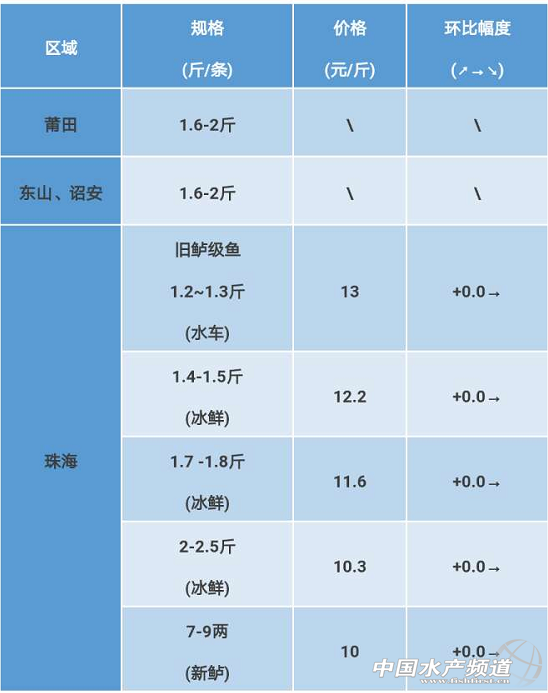 文/圖 粵海飼料集團 中國水產(chǎn)頻道 彭曉君 福建莆田、東山、詔安區(qū)域:上年老鱸魚賣完,今年新鱸魚主要規(guī)格在4-6兩,未達規(guī)格上市。 廣東珠海區(qū)域:舊鱸魚價格穩(wěn)定,頭批鱸魚:7——9兩開塘,價格10元,水車暫時沒有開,價格保持穩(wěn)定為主,珠海鱸魚市場已經(jīng)有3位魚中抓新鱸魚,平均打魚3塘/天的量走流通。 病害:天氣雨水多,水體變化,有毒物質(zhì)增多,肝臟負荷增加,出現(xiàn)白肝癥狀,建議五黃精華液潑水解毒,減輕肝臟負荷;低壓悶熱,晚上需要補充增氧劑或開多一臺增氧機,以補充溶氧。 【關鍵字】:海鱸 海鱸價格 水產(chǎn)養(yǎng)殖 |