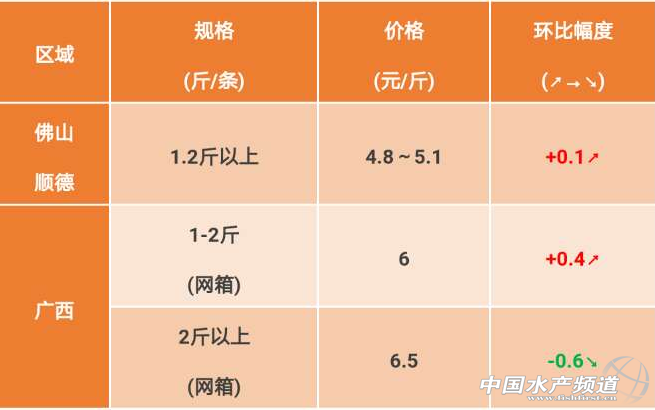廣西區(qū)域:1-3斤的叉尾走凍廠價格有所上漲,但檢測較嚴,要求白肉,無藥殘,交廠不及格的風險較大。