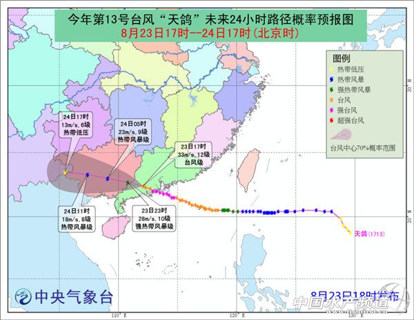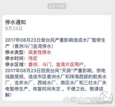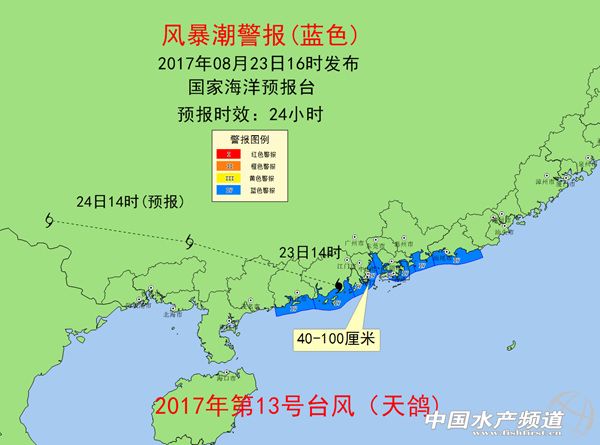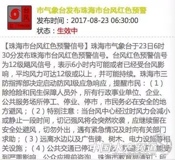 中國水產頻道綜合整理報道, 2017年第13號臺風“天鴿”的中心24日上午10點鐘位于廣西百色市境內。預計,“天鴿”將以每小時25-30公里的速度繼續(xù)向偏西方向移動,將于24日下午在廣西境內減弱為熱帶低壓。受其影響,云南、廣西、廣東、四川、貴州等5省區(qū)有大雨或暴雨,局部大暴雨。 【2017-08-24 11:25】廣西云南等5省區(qū)高速將受強降雨影響 受臺風“天鴿”影響,預計24日,廣東境內沈海高速,廣西境內泉南、蘭海、汕昆等高速,云南境內廣昆、渝昆、杭瑞等高速,貴州境內滬昆、蘭海等高速,四川境內京昆、渝昆等高速將受強降雨影響。 【2017-08-24 11:29】廣西受“天鴿”影響的26萬余戶恢復供電 截止8月24日7點,受臺風“天鴿”影響,廣西電網公司累計10千伏及以上線路跳閘319條,停電變電站7座,臺區(qū)9412臺、用戶45.4萬戶。經過供電人員連夜全力搶修,已恢復10千伏線路245條、臺區(qū)5678臺、用戶26.4萬戶。截止目前,累計投入人員5090人次,出動車輛728臺,發(fā)電車13臺,發(fā)電機59臺。 【2017-08-24 11:21】廣西北海南寧梧州等地機場將有持續(xù)性降雨 24日10時30分前后,臺風“天鴿”北側主體降雨雷達回波已經減弱,北海福成機場、梧州長洲島機場、南寧吳圩國際機場等機場上空以小到中雨為主,對航班起降影響不大,機場周邊道路交通正在逐步恢復正常。但臺風南側拖曳氣流回波明顯,降雨顯著,有逐漸北上的可能性,預計未來3-5小時,北海福成機場、湛江機場、梧州長洲島機場、南寧吳圩國際機場還有持續(xù)性降雨,局地降雨會加大,對機場道路、周邊機場大巴等公路交通會造成一定影響。 【2017-08-24 11:19】北海南寧部分河流出現1-6米漲水過程 受臺風“天鴿”影響,8月23日,廣西玉林、欽州、防城、北海、南寧等市降大到暴雨,局部大暴雨。受其影響,梧州、玉林、北海、欽州、南寧等市部分河流出現1~6米的漲水過程,北流河上游、南流江上游等11條河流14個站出現超警洪水,最大超警2.36米。相關市水文水資源局及縣域中心水文站已及時發(fā)布洪水預警。(來源:廣西新聞網) 【2017-08-24 10:42】暴雨黃色預警:云南廣西等5省區(qū)有大雨或暴雨 預計8月24日14時至25日14時,云南南部和東部、廣西西部和沿海地區(qū)、廣東西南部沿海以及四川盆地東南部、貴州中西部等地有大雨或暴雨,云南東南部等地的部分地區(qū)有大暴雨(100~160毫米),上述大部地區(qū)伴有短時強降水,小時最大降水量40~60毫米。 【2017-08-24 11:02】臺風藍色預警:天鴿今天下午在廣西境內減弱為熱帶低壓 預計,“天鴿”將以每小時25-30公里的速度繼續(xù)向偏西方向移動,將于今天下午在廣西境內減弱為熱帶低壓。 【2017-08-24 10:51】“天鴿”風雨不減 廣西玉林城市變海車變船 8月23日傍晚,臺風“天鴿”已經開始影響廣西部分地區(qū),廣西玉林23日晚20時和23時56分持續(xù)發(fā)布暴雨紅色預警,玉州區(qū)、福綿區(qū)、興業(yè)縣出現大暴雨。????截至23日21時,大暴雨已致玉林市區(qū)多處出現“看!眻鼍埃囆旭側缤_船。(廣西壯族自治區(qū)玉林市氣象局提供) 【2017-08-24 10:42】珠海雨過天晴 建筑工地一片狼藉 今天,隨著“天鴿”遠離,珠海雨過天晴,再現藍天白云,臺風造成的損毀也更加清晰的呈現人們眼前。大樹倒伏、部分道路損毀、建筑工地一片狼藉。目前,各項恢復工作正在逐步開展,愿珠海這座美麗的城市早日恢復原貌。 【2017-08-24 10:33】廣東陽江雅韶高速恢復通行 8月24日上午十點左右,廣東陽江雅韶高速恢復通行。 【2017-08-24 10:30】臺風繼續(xù)西行 云南多地將有強降雨 隨著臺風“天鴿”繼續(xù)西行,云南昭通、昆明、文山將遭遇強降雨,其中昭通、文山有暴雨。 【2017-08-24 10:33】廣東廣西機場航班運行逐步恢復 據飛常準消息,截至24日10時25分,廣州白云國際機場取消進港5班,取消出港4班,延誤進港25班,延誤出港19班;深圳寶安國際機場取消進港11班,取消出港15班,延誤進港17班,延誤出港12班;香港國際機場取消進港7班,取消出港6班,延誤進港24班,延誤出港26班;澳門國際機場取消進港2班,取消出港2班,延誤進港3班,延誤出港0班;南寧吳圩國際機場取消進港4班,取消出港2班,延誤進港6班,延誤出港7班。請旅客及時留意天氣及航班信息。(來源:飛常準) 【2017-08-24 10:04】云南貴州廣西今天多地雨嘩嘩 加強防范 今天,隨著臺風“天鴿”深入內陸,云南、廣西、貴州等地將有大到暴雨,風急雨大時人們盡量呆在堅固的建筑物中,同時上述地區(qū)需防范強降雨引發(fā)的山體滑坡、城市內澇、中小河流洪水等次生災害。 【2017-08-24 10:01】廣西電網Ⅲ級響應迎戰(zhàn)“天鴿” 廣西日報南寧訊8月23日,南方電網廣西公司啟動臺風黃色預警以及臺風Ⅲ級應急響應,全力迎戰(zhàn)“天鴿”,目前,廣西電網重要廠站恢復有人值守,提前開展隱患排查整治,重點加強對存在地質災害和低洼隱患的電網設備巡視,并及時對變電站、線路周邊樹障、隱患廣告牌和易漂浮物進行清理或督促整改,同時對變電站和臨近帶電線路的在建工程腳手架、遮欄等臨時材料進行加固或拆除,全力應對此次臺風。 【2017-08-24 09:48】“天鴿”致澳門珠海中山12人遇難 23日21時許,珠海市政府官方微博發(fā)布消息稱臺風“天鴿”造成2人死亡,直接經濟總損失55億元。據澳門民防行動中心統(tǒng)計,截至24日凌晨4點30分,天鴿襲澳導致8人