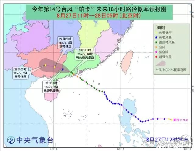 中國水產(chǎn)頻道綜合整理報道, ▲葵花-8號衛(wèi)星監(jiān)測到的27日04時00分至11時00分動態(tài)云圖,帕卡南部還“拖著”一條長長的螺旋雨帶,受其影響華南未來1-2天的降雨還將持續(xù)。 27日11時,“帕卡”的中心位于臺山市境內(nèi),也就是在北緯22.3°,東經(jīng)112.6°,中心附近最大風速25米/秒(10級風,強熱帶風暴級),中心最低氣壓985 百帕。預計,“帕卡”將以每小時20公里左右的速度向西偏北方向移動,強度逐漸減弱。 ▲中央氣象臺27日11時發(fā)布的“帕卡”未來24小時路徑概率預報圖 ▲廣東全省各地過去六小時累積降水量(27日09時更新,圖片源自廣東省氣象臺網(wǎng)站):“帕卡”結構呈現(xiàn)不對稱性,雨帶主要位于其中心的東北側,后續(xù)雨帶上來后將給華南地區(qū)帶來強勁降水。 ▲廣東全省各地過去1小時(27日08時-09時累積降水量(圖片源自廣東省氣象臺網(wǎng)站) 帕卡已登陸廣東臺山,登陸時強度達到臺風級 27日09時,“帕卡”的中心位于臺山市境內(nèi),也就是在北緯22.0°,東經(jīng)113.0°,中心附近最大風速33米/秒(12級風,臺風級),中心最低氣壓978 百帕。預計,“帕卡”將以每小時30公里左右的速度向西偏北方向移動,強度將逐漸減弱。 強臺風“天鴿”登陸珠海四天后,“帕卡”再次在珠海附近登陸。在登陸前,“帕卡”的強度增強到臺風級,雖然強度不及“天鴿”強,但是威力也不容小覷。而“帕卡”相較于“天鴿”的另外一個特點是“含水量”十足,它將給華南地區(qū)帶來強勁的雨水。未來兩天主要降水雨帶會集中在廣東大部、廣西中南部、福建南部、海南島東部等地,其中廣東南部沿海、廣西南部局地有大暴雨(100-180毫米)。 降水預報 26日20時至27日20時,廣東中南部、廣西東南部、福建南部、海南島等地的部分地區(qū)有大到暴雨,其中廣東南部沿海局地有大暴雨(100-150毫米)。 預計,“帕卡”將向偏西方向移動,27日傍晚前后移入廣西境內(nèi),強度逐漸減弱。今天南海大部、巴士海峽、臺灣海峽、北部灣、瓊州海峽以及廣東沿海、福建東南部沿海、海南北部沿海、廣西沿海將有6-7級大風,其中,南海東北部海域及珠江口區(qū)的風力將有8-10級,“帕卡”中心經(jīng)過的附近海域或地區(qū)的風力有11-12級,陣風可達13-14級。 同時,27日08時至28日08時,廣東大部、廣西中南部、福建南部、海南島東部等地的部分地區(qū)將有大雨或暴雨,其中廣東南部沿海、廣西南部局地有大暴雨。 ▲中央氣象臺27日06時發(fā)布的未來兩天全國降水量預報圖 大風預報 26日20時至27日20時,南海大部、巴士海峽、臺灣海峽、北部灣、瓊州海峽以及廣東沿海、福建東南部沿海、海南島北部沿海、廣西沿海將有6-7級大風,其中,南海東北部海域及珠江口區(qū)的風力將有8-10級,“帕卡”中心經(jīng)過的附近海域或地區(qū)的風力可達11-13級,陣風可達13-15級。 雖然“帕卡”目前在強度上弱于“天鴿”,但因其影響范圍與“天鴿”影響范圍重復較多,疊加影響效應明顯,仍需提高防范。 珠海、江門發(fā)布臺風紅色預警!防風I級響應已啟動! 根據(jù)氣象、水文、海洋部門預測,第14號臺風“帕卡”又將嚴重影響珠海市,帶來強風、強降雨和風暴潮。根據(jù)珠海市三防指揮部會商決定,從8月26日22時起,啟動全市防風I級應急響應。 今天(27日)1時臺風“帕卡”中心位于臺山川島東南方約330公里海面上,以30公里/小時的速度向西西北方向移動,預計今天(27日)13時前后在澳門至陽江沿海登陸,登陸時中心風力12級。經(jīng)江門市政府批準,市三防指揮于今天(27日)1時30分啟防風防汛 I 級應急響應,并發(fā)布《江門市防風防汛全民動員令》。 此次帕卡登陸臺山,強度雖然不及天鴿,但是也達到了臺風級別,對于剛剛遭受“天鴿”重創(chuàng)的珠三角地區(qū)的救災減災工作帶來嚴重阻礙。天佑廣東!廣東一定要挺住! 提醒相關地區(qū) 由于臺風“天鴿”剛給廣東造成嚴重風雨災害,正值救災復產(chǎn)關鍵時期,“帕卡”接踵而來,要警惕災害的疊加效應。公眾需注意加固或者拆除易被風吹動的搭建物,切勿隨意外出,應盡可能待在防風安全的地方,確保老人小孩留在家中最安全的地方,危房人員及時轉(zhuǎn)移。當臺風中心經(jīng)過時風力會減小或者靜止一段時間,切記強風將會突然吹襲,應當繼續(xù)留在安全處避風,危房人員及時轉(zhuǎn)移。還要注意防范強降雨可能引發(fā)的內(nèi)澇、山洪、泥石流等災害。 、偎献鳂I(yè)和過往船舶應當回港避風,加固港口設施,防止船舶走錨、擱淺和碰撞。 ②停止室內(nèi)外大型集會和高空等戶外危險作業(yè)。 ③被風吹動的搭建物,人員切勿隨意外出,應盡可能待在防風安全的地方,確保老人小孩留在家中最安全的地方,危房人員及時轉(zhuǎn)移。當臺風中心經(jīng)過時風力會減小或者靜止一段時間,切記強風將會突然吹襲,應當繼續(xù)留在安全處避風,危房人員及時轉(zhuǎn)移。 、芟嚓P地區(qū)應當注意防范強降水可能引發(fā)的山洪、地質(zhì)災害。 辟謠 據(jù)了解,本次臺風目前對臺山影響并不是很嚴重。網(wǎng)傳白藤二路接藤湖路口發(fā)生嚴重的海水倒灌,經(jīng)查實,視頻錄制的內(nèi)容乃是“天鴿”時發(fā)生的, 白藤二路接藤湖路口,這次“帕卡”未發(fā)生大規(guī)模倒灌,請切勿傳謠信謠! 提醒!水產(chǎn)養(yǎng)殖朋