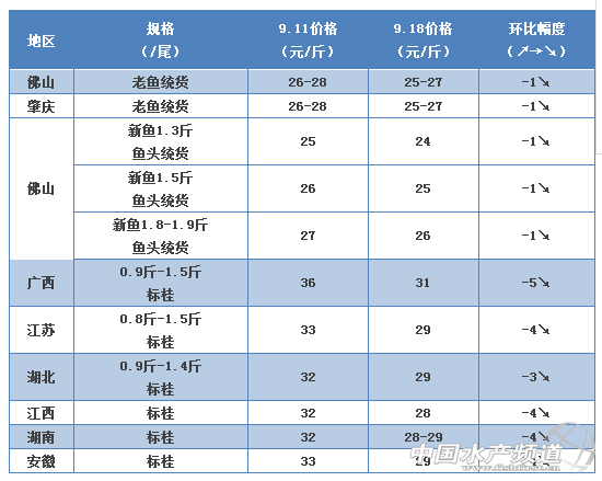 中國(guó)水產(chǎn)頻道報(bào)道, 文/圖 何氏水產(chǎn)、水產(chǎn)前沿實(shí)習(xí)編輯 李靜 桂花 1、上周全國(guó)桂魚價(jià)格持續(xù)下跌,跌幅1-5元/斤。廣東地區(qū)中桂三成左右的老魚,訂魚價(jià)格為27元/斤;中桂成數(shù)偏多的,價(jià)格相對(duì)高點(diǎn)。現(xiàn)在老魚質(zhì)量比新魚差,消費(fèi)市場(chǎng)相對(duì)來(lái)說(shuō)更喜歡新魚,老魚出塘量不多。 2、越接近國(guó)慶節(jié),養(yǎng)殖戶出魚意愿越高,現(xiàn)在處于新魚大量上市期。現(xiàn)在新魚長(zhǎng)得快,最近市場(chǎng)上1.8-1.9斤魚頭的新魚越來(lái)越多。新魚1.3斤魚頭統(tǒng)貨比上周下跌了1元/斤,1.5斤魚頭統(tǒng)貨比上周也下跌了1元/斤,F(xiàn)在新魚明顯出現(xiàn)供大于求現(xiàn)象,特別是偏小規(guī)格的魚下跌幅度更大。外省早桂上市數(shù)量也越來(lái)越多,價(jià)格便宜,對(duì)廣東價(jià)格沖擊不少。預(yù)測(cè)價(jià)格還會(huì)有一定幅度的下幅空間。 3、廣西、江蘇、湖北、安徽等地老魚價(jià)格受本地新魚陸續(xù)上市及廣東地區(qū)價(jià)格影響,上周價(jià)格出現(xiàn)大幅度的下跌,特別是廣西價(jià)格,下跌了5元/斤,其它地區(qū)價(jià)格也下跌了3-4元/斤。 |