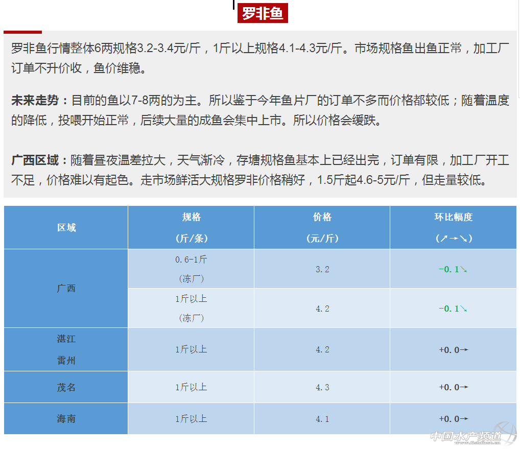 2017年11月4日羅非魚塘頭價(jià)行情簡(jiǎn)析--出魚正常,價(jià)格穩(wěn)