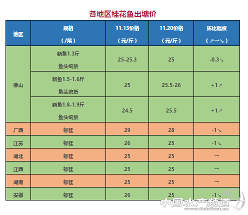 中國水產(chǎn)頻道獨家報道, 文/圖何氏水產(chǎn)、水產(chǎn)前沿李靜 桂花魚 上周四開始,由于氣溫下降,養(yǎng)殖戶惜售等原因,導(dǎo)致廣東地區(qū)桂魚訂魚價格上漲了0.5-1元/斤左右。偏小規(guī)格的魚(小魚2成以上)訂魚價格要25元,規(guī)格好的魚(小魚1.5成以下,大魚1成左右)訂魚價格要26元/斤,偏大規(guī)格(中桂4成以上)訂魚價格也要25.5元/斤。市場依然以標桂為主,出塘量低。開塘定價依舊是按魚頭大小定價格,這個月市場的銷量一直不樂觀,下月有望改善。 本地魚貨源充足,價格平穩(wěn),廣東銷量無法上升。目前江蘇、安徽兩地螃蟹塘的桂魚大量上市,貨源充足導(dǎo)致價格下跌了1元/斤。 【關(guān)鍵字】:桂花魚 塘頭價 水產(chǎn)養(yǎng)殖 |