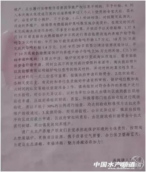 中國水產(chǎn)頻道獨家報道, 文/圖 水產(chǎn)前沿 曾鈴程 現(xiàn)在已經(jīng)進(jìn)入12月,沿劉家灣趕海園向北向南行走,環(huán)繞在景區(qū)周邊的養(yǎng)殖區(qū)域已沒有了昔日水產(chǎn)養(yǎng)殖的繁忙景象,幾臺挖掘機正在清理拆除后的斷壁殘垣。 按照日照市區(qū)要求,濤雒鎮(zhèn)10月27日啟動了劉家灣趕海園周邊養(yǎng)殖清理暨海岸線修復(fù)工程。整個工程涉及濤雒鎮(zhèn)王家村、劉家灣村、沙嶺子村、小海村4個村和市水產(chǎn)集團濤雒水產(chǎn)組,共計84個養(yǎng)殖大棚、約3.9萬平方米的養(yǎng)殖面積、156間各類養(yǎng)殖用房。 據(jù)南通海大生物科技有限公司林紹杰介紹道:“到2020年前,沿海公路外22個行政村都要整體拆遷,現(xiàn)在在逐步落實,F(xiàn)在鍋爐不讓燒,3季變1季,燒氣的1000平方一天費用就是2千塊,換水量還只有20-30%,成本很高。主要濤雒是要打造旅游城市,與政府的定位有很大關(guān)系。其他地方目前還沒有這么硬性的要求。” 相關(guān)規(guī)定早已出臺通知 七月,日照的養(yǎng)殖戶收到燃煤鍋爐整改的通知,一時間人心惶惶。8月11日,養(yǎng)殖戶再次收到名為《致全鎮(zhèn)沿海水產(chǎn)養(yǎng)殖戶的一封信》的文件,文件中指出,根據(jù)《濤雒鎮(zhèn)沿海養(yǎng)殖燃燒鍋爐“清零”專項行動工行方案》,各水產(chǎn)養(yǎng)殖戶要將現(xiàn)有養(yǎng)殖燃煤鍋爐采取關(guān)、停、并、轉(zhuǎn)等措施,實施煤改天然氣、電、太陽能、地?zé)、空氣能、安裝使用能量回收裝置等清潔能源改造。于2017年10月31日前完成鍋爐淘汰改造工作,原則上以不能恢復(fù)使用為標(biāo)準(zhǔn),做到鍋爐主體移位,煙囪拆除,所有連接管道和線路切斷,并注銷鍋爐有關(guān)手續(xù)。因客觀條件限制無法拆除主體的,要切除上下水和電路設(shè)施,拆除鼓風(fēng)機、電機等主要配套設(shè)備,鎮(zhèn)政府將會同區(qū)級部門組織聯(lián)合執(zhí)法予以處罰并依法拆除。 鍋爐改造:近萬噸飼料飼料銷量大幅縮水 據(jù)當(dāng)?shù)仞B(yǎng)殖戶馬榮(化名)介紹:“只有少部分進(jìn)行了改造,補助款聽說還有一周就可以到位了。大部分都不敢進(jìn)行改造,燒氣太貴了,有改燒電的。在這邊,哪家改了大家都會去看,去了解,但是還是不太敢嘗試! 日照的工廠化養(yǎng)蝦主要集中在濤雒鎮(zhèn),其養(yǎng)面積非常密集,以小家庭作坊為主。據(jù)了解,從2011年前后開始,濤雒鎮(zhèn)就開始嘗試養(yǎng)殖工廠化南美白對蝦,但那時候的養(yǎng)殖密度并不高,每立方放苗300尾左右,由于經(jīng)驗有限,成功率并不高。隨著技術(shù)越漸成熟以及利益的驅(qū)使,到2013年前后,濤雒鎮(zhèn)工廠化養(yǎng)蝦已經(jīng)發(fā)展到500多戶,放苗密度也提高到500尾/方,單位產(chǎn)量20-25斤。由于冬季蝦利潤非?捎^,養(yǎng)反季節(jié)冬棚蝦的養(yǎng)殖戶也在成倍的增加。 據(jù)淮安澳華日照區(qū)業(yè)務(wù)經(jīng)理匡立方介紹,2016年前后,濤雒鎮(zhèn)的工廠化養(yǎng)蝦呈現(xiàn)爆發(fā)式增長,目前已經(jīng)發(fā)展到1500-2000個棚左右的規(guī)模,飼料容量達(dá)到5000-10000噸。 “清河行動”:連河邊大棚也要拆 不僅僅是海邊大棚拆除,還有“清河行動”,河邊大棚也要拆。 這次拆大棚地區(qū)不僅包括了劉家灣趕海園周邊養(yǎng)殖清理暨海岸線養(yǎng)殖區(qū)域,還有傅疃河、崮河、沙墩河日照經(jīng)濟技術(shù)開發(fā)區(qū)段、郭家湖子河、劉瑯河、白溝河、嶺長河、東海峪河八條河流的河道管理范圍和保護范圍內(nèi)。這些地方違規(guī)違法的養(yǎng)殖大棚都會被限期拆除。 但據(jù)當(dāng)?shù)仞B(yǎng)殖戶馬榮告知道:“在傅疃河要進(jìn)行河道清理,進(jìn)行沿岸整治,所以像蔡家潭那些河邊的大棚也會拆遷。當(dāng)時通知的是會無償拆遷,因為這些大棚是自己私自搭建的,沒有被批準(zhǔn),但是養(yǎng)殖戶投入了大量資金,如果沒有賠償,那損失非常大,大家接受不了,后面聽說經(jīng)過協(xié)調(diào)能夠得到部分補助! 據(jù)澳華濤雒鎮(zhèn)業(yè)務(wù)員鄭明介紹道:“現(xiàn)在大家都在談賠償?shù)氖,不管養(yǎng)魚養(yǎng)蝦的賠償依同一個標(biāo)準(zhǔn),聽說是600塊/方。而且這個賠償是不管你魚棚里有沒有魚或者蝦,都是這標(biāo)準(zhǔn)。前段時間因為不能燒鍋爐所以有些人都養(yǎng)多寶魚了,而這些也要被拆遷,不額外賠償。” 賠償款遲遲未到位養(yǎng)殖戶翹首以盼 但是不管是鍋爐改造,還是沿海、沿河大棚拆遷,都反映賠償或補貼款遲遲沒有到位。 澳華蔡家灘經(jīng)銷商孫國說到:“這邊(蔡家灘)現(xiàn)在鍋爐補償款已經(jīng)到位了,但是拆遷費還沒有具體談好。因為這邊是河道占用清理的問題,是當(dāng)?shù)卣鲥X,賠償金目前是商量以300塊/方為準(zhǔn),但是這個費用和沿海拆除相差就太大了,有的養(yǎng)殖戶就不能接受。” 【關(guān)鍵字】:拆遷 補償 水產(chǎn)養(yǎng)殖 |