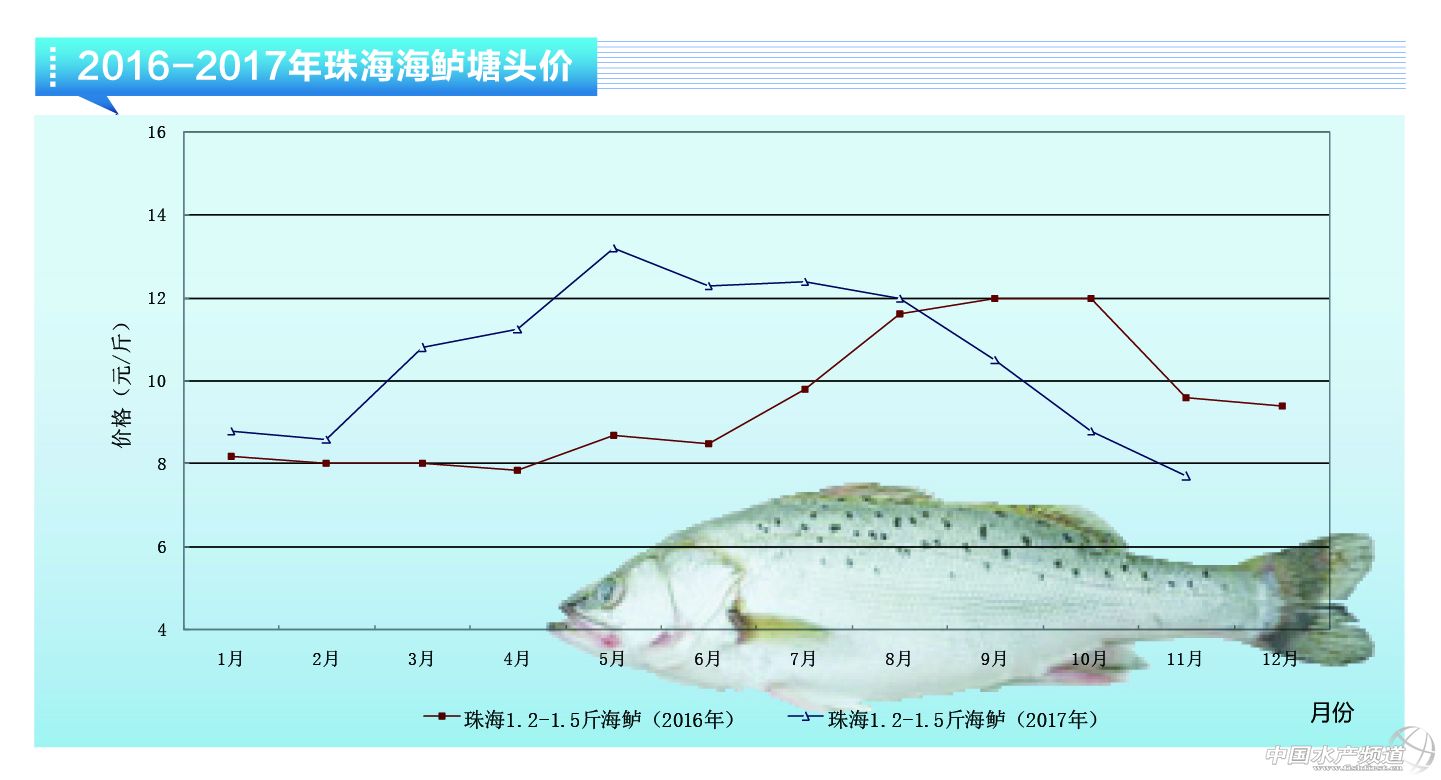 中國水產(chǎn)頻道獨(dú)家報(bào)道, 截至2017年11月20日各地海鱸塘頭價(jià)格: 福建莆田:1-1.2斤規(guī)格塘頭價(jià)10元/斤。 福建莆田、東山、詔安1-1.2斤規(guī)格塘頭價(jià)8.8-9.1元/斤。 廣東珠海1.2-1.25斤(頭批新鱸魚)7.2元/斤,1.25-1.3斤(頭批新鱸魚)7.2-7.3元/斤,1.3-1.4斤 (頭批新鱸魚)7.5元/斤,1.4-1.5斤(頭批新鱸魚)7.7元/斤。 福建莆田、東山、詔安區(qū)域:本月新鱸魚上市量日益增加,達(dá)上市規(guī)格魚超過90%。隨著上市鱸魚量的增加,市場(chǎng)價(jià)格呈持續(xù)的微下滑趨勢(shì),行情低迷,養(yǎng)殖戶出魚意愿較低,持觀望態(tài)度有序出魚。 廣東珠海:現(xiàn)頭批魚規(guī)格普遍集中1.2-1.5斤,市場(chǎng)要求1.2斤規(guī)格以上才能滿足抓魚。上層消費(fèi)市場(chǎng)淡季,供過于求,導(dǎo)致價(jià)格持續(xù)波動(dòng)下降。接近年底結(jié)賬期,資金量緊急上升,部分客戶開始拋售性買魚籌集資金,造成了魚價(jià)波動(dòng)。(彭曉君) |