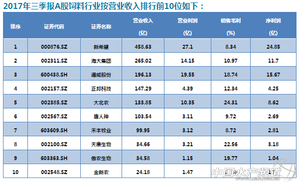 中國水產(chǎn)頻道獨家報道, 2017年前三季度,營業(yè)收入和營業(yè)利潤均最高的是新希望;營業(yè)收入同比增長最多的是海大;營業(yè)利潤和利潤總額同比增長最快的是通威。你最看好誰? A股飼料行業(yè)2017年三季報披露公司共15家,實現(xiàn)盈利14家,虧損1家,總營業(yè)收入1553.55億,總營業(yè)利潤90.82億,行業(yè)營業(yè)利潤/營業(yè)總營收=5.85%。其中 營業(yè)收入前五位分別為: 新希望(000876)458.63億 海大集團(002311)265.02億 通威股份(600438)196.13億 正邦科技(002157)147.29億 大北農(nóng)(002385)133.85億。 營業(yè)利潤前五位分別為: 新希望(000876)27.10億 通威股份(600438)19.55億 海大集團(002311)14.15億 大北農(nóng)(002385)10.35億 正邦科技(002157)4.39億。 行業(yè)總營業(yè)收入同比增長14.48%,總營業(yè)利潤同比增長12.83%。營業(yè)收入前5位企業(yè)占行業(yè)總營收77.30%,營業(yè)利潤前5位企業(yè)占行業(yè)總利潤83.16%。 虧損企業(yè)主要有康達爾(000048)! 。〝(shù)據(jù)來源:前瞻眼) 飼料行業(yè)營業(yè)收入排行前10位企業(yè)同比增長情況如下: 。〝(shù)據(jù)來源:前瞻眼) 2017年三季報飼料行業(yè)虧損企業(yè)名單如下: 。〝(shù)據(jù)來源:前瞻眼) 【關(guān)鍵字】:飼料行業(yè) 利潤 水產(chǎn)養(yǎng)殖 |