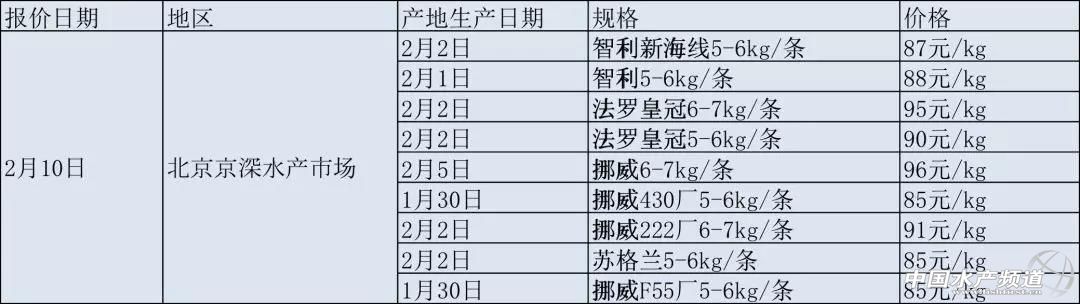 國內(nèi)主要海產(chǎn)市場大西洋鮭(三文魚)批發(fā)銷售價(jià)格 中國水產(chǎn)頻道原創(chuàng)報(bào)道,本周(2月8日-11日),冰鮮三文魚市場價(jià)格較為穩(wěn)定,價(jià)格較平時(shí)走高。農(nóng)歷春節(jié)即將到來,這兩天也迎來了消費(fèi)的高峰期,市場上挪威,智利產(chǎn)品居多,蘇格蘭和法羅群島的作為補(bǔ)充,整體市場供應(yīng)情況是充足的,節(jié)假日消費(fèi)高峰助推價(jià)格上漲,預(yù)計(jì)漲價(jià)潮會(huì)在假期過后逐漸回落。 2018年2月11日: 2018年2月10日: 2018年2月9日: 2018年2月8日: 注明:以上價(jià)格為各地水產(chǎn)市場冰鮮三文魚(大西洋鮭)的市場批發(fā)銷售價(jià)格,非零售價(jià)格。產(chǎn)地生產(chǎn)日期表示:大西洋鮭從養(yǎng)殖場捕撈并加工完成的日期。大西洋鮭品牌中英文注釋:“澳大利亞休恩”即為:Huon;“澳大利亞塔斯?fàn)枴奔礊椋篢assal;“智利新海線”即為:New World Currents;“智利麥迪”即為:Multierport Foods;“丹麥皇冠”即為:Bakkafrost;“SSF蘇格蘭”即為:Scottish Sea Farms;“挪威耕!奔礊椋篗arine Harvest。 《海鮮指南》編輯部三文魚報(bào)價(jià)欄目定期發(fā)布最新的市場行情和數(shù)據(jù),為廣大海產(chǎn)人提供數(shù)據(jù)參考。如果你所在的市場有相關(guān)三文魚的報(bào)價(jià)信息或新聞可以提供,歡迎聯(lián)系:陳先生:18819465417(微信同號(hào)),郵箱:cl@fishfirst.cn。 |