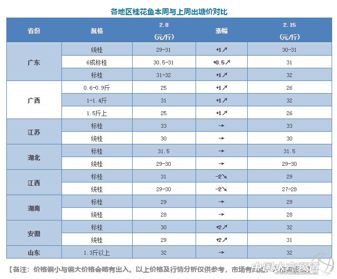 中國水產(chǎn)頻道獨家報道, 市場需求量暴增,春節(jié)期間廣東鱖魚價格上漲或?qū)莶豢蓳酰?/div> 文/圖 水產(chǎn)前沿 李靜 今天是農(nóng)歷二〇一七年的最后一天,很多人已經(jīng)開啟了度假模式,但還有無數(shù)水產(chǎn)人仍堅守在工作崗位上,他們或是養(yǎng)殖戶,或是拉魚的工人,或是活魚長途運輸?shù)乃緳C,或是海鮮批發(fā)市場的商戶……是他們,保證了我們春節(jié)餐桌上美味水產(chǎn)品的供應(yīng),在此,小編向辛苦了一年和仍堅守崗位的水產(chǎn)人說一聲:“您辛苦了!” 一份辛苦,一份收獲,相信今年春節(jié)鱖魚價格也沒有讓大家失望。年關(guān)已至,各大批發(fā)市場需求量是平日的兩到三倍甚至更多,強勁的市場消費需求拉動終端市場價格一天一個價,甚至一天漲數(shù)元/斤。 終端市場價格飆升反過來刺激鱖魚塘頭價明顯上揚,廣東統(tǒng)貨31元/斤,標(biāo)桂32元/斤,漲幅1元/斤左右;廣西標(biāo)桂32-33元/斤,漲幅1-2元/斤;安徽標(biāo)桂32元/斤,漲幅2元/斤。據(jù)業(yè)內(nèi)人士預(yù)計,廣東地區(qū)初二到初五仍有上漲空間,而廣西33元/斤的高價則可能在節(jié)后回落。 餌料魚行情分析 餌料魚:清遠麥鯪4.5元/斤、土鯪5.2元/斤、巴西雕3.8元/斤;肇慶麥鯪4―4.2元/斤、鳊魚3.9元/斤、新土鯪4.8-5.0元/斤、隔年土鯪4.2―4.4元/斤;佛山土鯪4.8-4.9元/斤;江門鶴山麥鯪4.5元/斤、土鯪5.1元/斤;廣西麥鯪4元/斤、鳊魚3.5元/斤。 【關(guān)鍵字】:餌料魚 行情分析 水產(chǎn)養(yǎng)殖 |