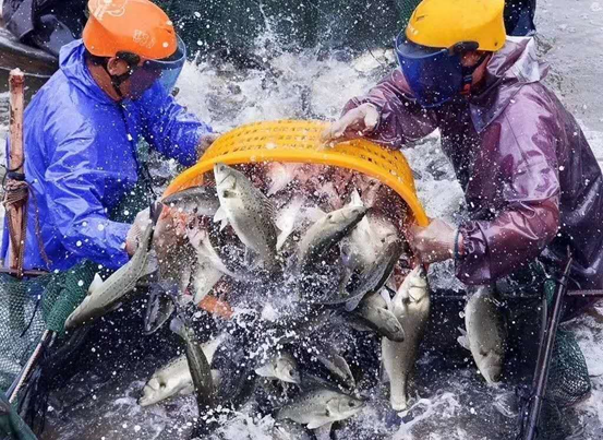 夏末初秋的早晨,天剛蒙蒙亮,池塘邊已出現(xiàn)捕魚人忙碌的身影。比起以往純?nèi)斯さ牟僮,如今拉網(wǎng)、裝筐、上岸、稱重、記賬、裝車等環(huán)節(jié)已實(shí)現(xiàn)了機(jī)械化。裝車之后的海鱸魚將被運(yùn)往深加工車間,車間里的謝祖銘已等候多時(shí)。