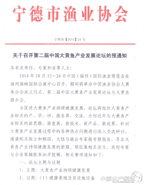 第二屆中國大黃魚產(chǎn)業(yè)發(fā)展論壇與推介會[福建]
