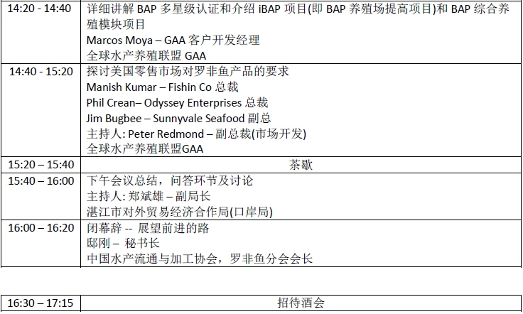 全球水產養(yǎng)殖聯(lián)盟(Global Aquaculture Alliance)誠摯地邀請您參加我們將于 2015 年 6 月 19 日在廣 東湛江舉辦的 BAP 羅非魚認證研討會。此次會議由 GAA 和中國水產流通與加工協(xié)會共同舉辦,會 議為 19 日 8:30-16:20 全天會議,地點為湛江皇冠假日酒店。 本次會議的目的是為中國羅非魚生產商和供應商提供一個平臺,讓大家更直接全面了解北美和歐 洲市場對羅非魚負責任生產產品的要求和 BAP 多星級認證如何能夠幫助大家來滿足這些要求。 不管您是正在熟悉了解 BAP 認證還是已經是 BAP 認證的長期用戶和支持者,相信這次會議都會為 您提供如何最大化最優(yōu)化您的 BAP 經歷的知識體系。