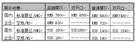 注:1.標準展位包括地毯、三面圍板、公司名稱楣板、咨詢桌一張、折椅兩把、射燈兩盞、電源插座一個(特殊用電請事先說明,另行收費)。