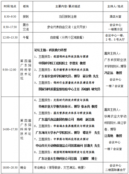 2015年廣東省飼料行業(yè)年會(huì) 廣東省飼料工業(yè)經(jīng)過(guò)30余年的發(fā)展,已成為我國(guó)工業(yè)飼料產(chǎn)銷第一大省,工業(yè)飼料總產(chǎn)量連續(xù)12年位居全國(guó)首位,為我省農(nóng)業(yè)農(nóng)村經(jīng)濟(jì)發(fā)展和我國(guó)飼料工業(yè)發(fā)展做出了重要貢獻(xiàn)。 近年來(lái),畜禽水產(chǎn)品價(jià)格低位徘徊、原材料價(jià)格震蕩攀升,畜禽水產(chǎn)病害、極端天氣時(shí)有發(fā)生,勞動(dòng)力、資源與環(huán)境成本壓力驟增,飼料工業(yè)經(jīng)濟(jì)上行壓力加大。同時(shí),養(yǎng)殖業(yè)結(jié)構(gòu)及規(guī)模調(diào)整,行業(yè)集中度提高,城鄉(xiāng)居民畜禽水產(chǎn)品消費(fèi)需求變化,以及日益強(qiáng)烈的食品安全訴求,都標(biāo)志著飼料工業(yè)經(jīng)濟(jì)步入新常態(tài)。“直面新常態(tài),加快轉(zhuǎn)型升級(jí)步伐”成為行業(yè)共同命題。 一年一度的廣東省飼料行業(yè)年會(huì)已連辦20年,已成為頗具影響力的行業(yè)盛會(huì),為促進(jìn)行業(yè)科技交流、經(jīng)驗(yàn)分享及商貿(mào)洽談搭建了平臺(tái)。報(bào)經(jīng)上級(jí)主管單位同意,“2015年廣東省飼料行業(yè)年會(huì)”將于12月6日在東莞尼羅河酒店隆重舉辦! 本次年會(huì)以 “科技助力轉(zhuǎn)型”為主題,重點(diǎn)推出《第四屆廣東飼料科學(xué)技術(shù)論壇》,在行業(yè)主管部門的指導(dǎo)下,面向“十三五”飼料業(yè)轉(zhuǎn)型升級(jí)謀發(fā)展,匯集產(chǎn)學(xué)研精英,共襄科技進(jìn)步、共促轉(zhuǎn)型發(fā)展,共同促進(jìn)廣東飼料強(qiáng)省建設(shè)。 科技助力轉(zhuǎn)型,攜手開創(chuàng)未來(lái)。屆時(shí),行業(yè)領(lǐng)導(dǎo)、專家學(xué)者、骨干企業(yè)千余人到會(huì),在行業(yè)廣大會(huì)員、國(guó)內(nèi)外企事業(yè)單位的共同參與支持下,通過(guò)科技論壇、新品展示,構(gòu)建內(nèi)容更為豐富的科技交流、經(jīng)驗(yàn)分享、商貿(mào)洽談平臺(tái)。這必將是行業(yè)促進(jìn)聯(lián)合與創(chuàng)新發(fā)展的一次盛會(huì)! 年會(huì)舉辦時(shí)間: 年會(huì)于2015年12月6日(星期日)舉辦,會(huì)期一天。本次年會(huì)包括行業(yè)論壇、企業(yè)展示、年會(huì)晚會(huì)等幾個(gè)主要板塊: 1、行業(yè)論壇,隆重推出:《第四屆廣東飼料科學(xué)技術(shù)論壇》,參見附件1—年會(huì)議程。 2、企業(yè)展示,優(yōu)先和鼓勵(lì)新技術(shù)、新產(chǎn)品展示:以展位、資料發(fā)放、交流區(qū)結(jié)合的方式,為行業(yè)朋友提供產(chǎn)品、技術(shù)交流展示空間。 3、年會(huì)晚會(huì),以行業(yè)自辦節(jié)目為主體:厲行節(jié)儉辦會(huì),以行業(yè)文藝匯演形式,傳遞正能量,構(gòu)建行業(yè)文化生活的舞臺(tái)。年會(huì)舉辦地點(diǎn):東莞市萬(wàn)江區(qū)尼羅河酒店(地址:萬(wàn)江路南10號(hào),酒店電話:0769-22706666) 會(huì)議日程:年會(huì)報(bào)到、參會(huì)有關(guān)注意事項(xiàng)說(shuō)明:1、會(huì)務(wù)費(fèi)收取標(biāo)準(zhǔn) 參會(huì)收取會(huì)務(wù)費(fèi),會(huì)員單位350元/人,非會(huì)員單位650元/人,凡年度協(xié)會(huì)會(huì)費(fèi)未繳納的,按非會(huì)員單位標(biāo)準(zhǔn)收取會(huì)務(wù)費(fèi)。11月20日前填報(bào)回執(zhí)并匯繳會(huì)務(wù)費(fèi)的實(shí)行優(yōu)惠價(jià):會(huì)員單位300元/人,非會(huì)員單位550元/人。2、參會(huì)住宿預(yù)定 參會(huì)代表住宿自理。11月20日前報(bào)名、預(yù)定住宿的,協(xié)會(huì)設(shè)專人代為預(yù)訂酒店住房。本次年會(huì)協(xié)議預(yù)留房費(fèi)標(biāo)準(zhǔn):商務(wù)標(biāo)間298元/間。3、其他事項(xiàng) (1)尊重大會(huì)安排,準(zhǔn)時(shí)到會(huì),參加年會(huì)的各項(xiàng)活動(dòng); (2)行業(yè)論壇、年會(huì)晚會(huì)、企業(yè)展示暨商務(wù)酒會(huì)交流區(qū)等均憑票入場(chǎng)。晚會(huì)(晚宴)時(shí),敬請(qǐng)對(duì)號(hào)入座; (3)大會(huì)統(tǒng)一制作《會(huì)刊》暨論壇文集,于報(bào)到處發(fā)放。年會(huì)廣告、展位征訂的有關(guān)說(shuō)明: 為更好地營(yíng)造大會(huì)節(jié)日氣氛,展示行業(yè)科技、品牌形象,拓展行業(yè)信息交流,年會(huì)將以多種形式展示和發(fā)布行業(yè)企業(yè)有關(guān)資訊,F(xiàn)將年會(huì)廣告、展位服務(wù)方式及費(fèi)用標(biāo)準(zhǔn)說(shuō)明如下:表1 廣告、展位征訂收費(fèi)(優(yōu)惠)標(biāo)準(zhǔn)一覽表 真誠(chéng)期望和歡迎廣大行業(yè)企事業(yè)單位、新老朋友積極參與,充分展示風(fēng)采,共同塑造廣東飼料行業(yè)整體形象,打造行業(yè)人自己的節(jié)日! 年會(huì)參與、協(xié)辦、廣告征訂、節(jié)目征集、論文征集現(xiàn)已全面啟動(dòng)。真誠(chéng)感謝和歡迎廣大會(huì)員及有關(guān)企事業(yè)單位對(duì)本次大會(huì)的贊助支持!報(bào)名參與、廣告征訂聯(lián)系辦法:聯(lián)系人:周風(fēng)珍、李利、黃麗梅、陳舒寧、張美妮電話:020-37289311、37288820、37288723、37246533傳真:020-37287849E-mail:gdfeed@vip.163.com QQ:804219068戶 名:廣東省飼料行業(yè)協(xié)會(huì)開戶行:中國(guó)建設(shè)銀行廣州市先烈東路支行賬 號(hào):44001490209050384331年會(huì)籌備咨詢:周 洪 020-3728931