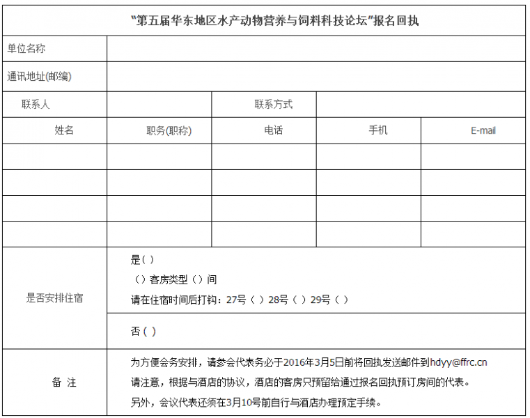 請通過電子郵件(hdyy@ffrc.cn)向會務(wù)組發(fā)送報名回執(zhí)(見附件)的方式進行注冊。會議通知及報告回執(zhí)word版可到淡水漁業(yè)研究中心網(wǎng)站(www.ffrc.cn)上下載。