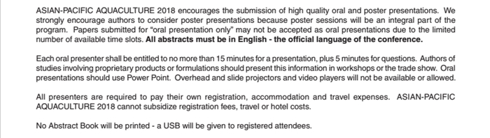 亞太水產(chǎn)大會(huì)2018年會(huì)將會(huì)有特別會(huì)議針對(duì)性解決農(nóng)戶(hù)日常生活中的實(shí)際問(wèn)題和水產(chǎn)養(yǎng)殖的需要。將提供對(duì)當(dāng)前農(nóng)民面臨的問(wèn)題有益的具體信息。