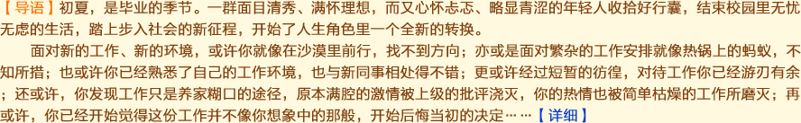 從大學(xué)校園步入一個(gè)新的環(huán)境,接觸新的同事...[全文] [評(píng)論]