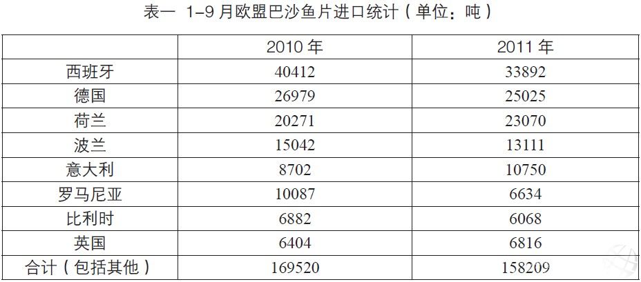 VASEP 稱,2011 年越南巴沙產量約120 萬噸,盡管面臨原料短缺和魚病困擾,出口額仍達18 億美元,同比增長27%。其中凍魚片出口額占99%。歐盟是越南巴沙最大出口目的市場,2011 年對歐盟出口量下降1%,其中對西班牙和德國出口量下降明顯。而對美國和東盟國家的出口量保持增長,其中對新加坡、菲律賓和泰國的出口量分別增長39%、86% 和37%。2011 年越南巴沙對泰國出口量大約11,000 噸。對墨西哥、巴西和沙特阿拉伯等國家出口量也保持增長 。