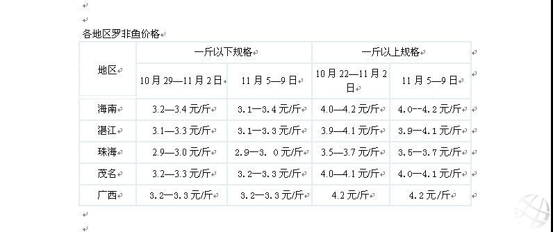 2012年11月5--9日羅非魚周報 |