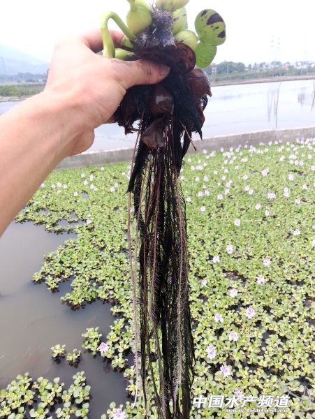 2 鯉魚的繁殖 2.1鯉魚種魚的選擇 鯉魚種魚的選擇與四大家魚的選擇不同就在于雌魚和雄魚的區(qū)分。鯉魚的雌雄不能再靠摸胸鰭來區(qū)分,而是通過觀察泄殖腔的不同來區(qū)分的。鯉魚母魚的泄殖腔孔大而略圓,且向外凸;公魚則小而狹長,呈凹行。也可通過輕托腹部,用手撫摸腹部是否有較硬中線來判斷,但也有的公魚因體內脂肪較多而使得腹部較軟,影響判斷。其中,判斷種魚的成熟度與四大家魚相似。 2.2鯉魚的催產(chǎn)及孵化 鯉魚的催產(chǎn)和四大家魚相似,同樣采用鰭下注射,如若水溫較高,種魚成熟度較好時,只用注射一次便可完成產(chǎn)卵。孵化則與四大家魚完全不同。鯉魚催完產(chǎn)后,在產(chǎn)卵池中放入大量洗凈根須的水葫蘆,使根須垂直于池底。因為鯉魚卵具粘性和沉性,放入水葫蘆,能使魚卵附著在根須上,避免大量魚卵在池底沉積,導致缺氧死亡。在產(chǎn)卵結束后可直接撈起水葫蘆,將水葫蘆放入池塘中直接孵化。此種孵化方法較為簡單方便有效的降低的孵化成本。