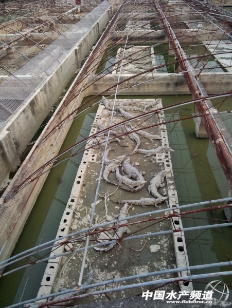 在魚種站還有一大特色,那就是他們的鱷魚養(yǎng)殖。鱷魚,沒錯,一種古老而又神奇的物種,很多人也許只在公園或動物世界里見到過它,而在這,這種自然界兇猛殘暴的冷血殺手卻被規(guī)模化的養(yǎng)殖。說實話,當初選擇到這實習,有很大一部分是出于對鱷魚養(yǎng)殖的好奇。最刺激的事就是給這些大家伙喂食,主要給他們投喂鮮活的 羅非魚,2-3天喂一次。