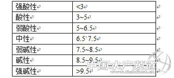 養(yǎng)殖水體pH值是水質(zhì)的重要指標,對魚和蝦的高產(chǎn)穩(wěn)產(chǎn)具有重要作用,必須十分注重養(yǎng)殖水體pH值得管理。通常將養(yǎng)殖水體pH制作如下分化: