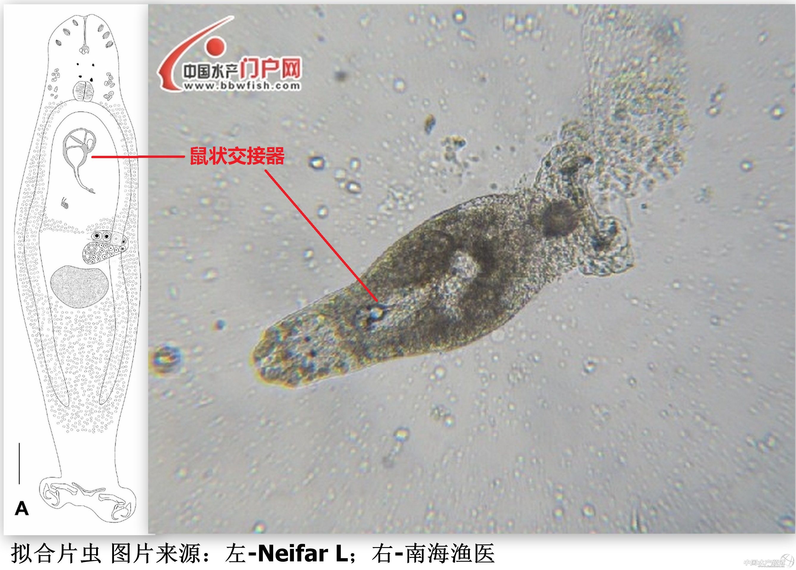 臺(tái)灣的蔡信雄教授(國(guó)立屏東科技大學(xué))在一份叫“石斑魚(yú)常見(jiàn)疾病及診斷介紹"的PPT中有提到臺(tái)灣異形吸蟲(chóng)在石斑魚(yú)身上寄生。這種吸蟲(chóng)第一宿主為貝類(lèi),第二宿主魚(yú)類(lèi),終宿主是水生鳥(niǎo)類(lèi)。吸蟲(chóng)在尾蚴階段感染石斑魚(yú)的鰓部吸取營(yíng)養(yǎng),發(fā)育成后尾蚴,刺激鰓部黏液增生、壞死和出血,最后浮出水面被鳥(niǎo)類(lèi)捕食。