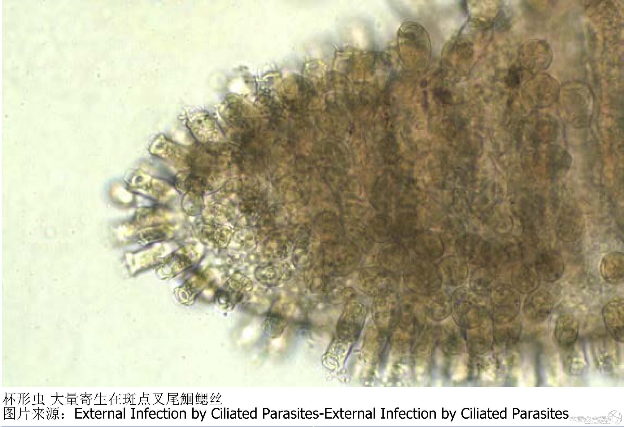 這幾類(lèi)纖毛蟲(chóng)主要寄生在魚(yú)類(lèi)的鰓部和體表。然而,嚴(yán)格上講它們和魚(yú)的關(guān)系并不完全是寄生,因?yàn)檫@幾類(lèi)蟲(chóng)是從水環(huán)境中獲取營(yíng)養(yǎng)而非魚(yú)體本身,當(dāng)只有少量蟲(chóng)體附著在魚(yú)體身上時(shí),對(duì)魚(yú)本身并無(wú)不良影響,屬于共棲關(guān)系。隨著附著數(shù)量增多,才會(huì)開(kāi)始刺激魚(yú)體鰓組織或體表細(xì)胞增生和分泌黏液,之后魚(yú)瘙癢摩擦池壁,繼而感染細(xì)菌。同時(shí)鰓部感染嚴(yán)重時(shí)會(huì)造成缺氧,特別是在高溫季節(jié)如果沒(méi)有及時(shí)殺蟲(chóng),有可能導(dǎo)致大面積浮頭,缺氧死亡。殺蟲(chóng)藥物也是常規(guī)的那幾種,甲醛、醋酸銅或銅鐵合劑都可以,筆者的經(jīng)驗(yàn)是甲醛的效果相對(duì)較好,如果是石斑魚(yú)標(biāo)苗階段,則用淡水+甲醛浸泡處理。