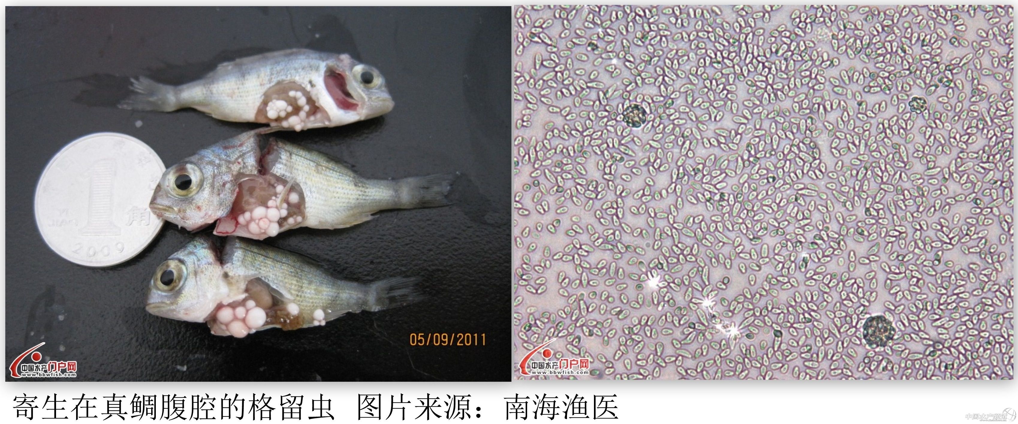 寄生在真鯛腹腔的微孢子蟲(chóng),格留蟲(chóng)屬新種,包囊為白色。