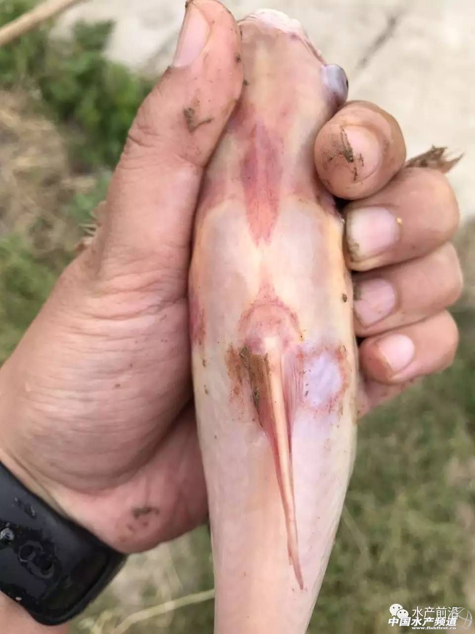 經(jīng)過調(diào)查、走訪,在7個點(diǎn)的19口斑點(diǎn)叉尾鮰養(yǎng)殖池塘發(fā)現(xiàn)了三種典型的發(fā)病癥狀,分別是: